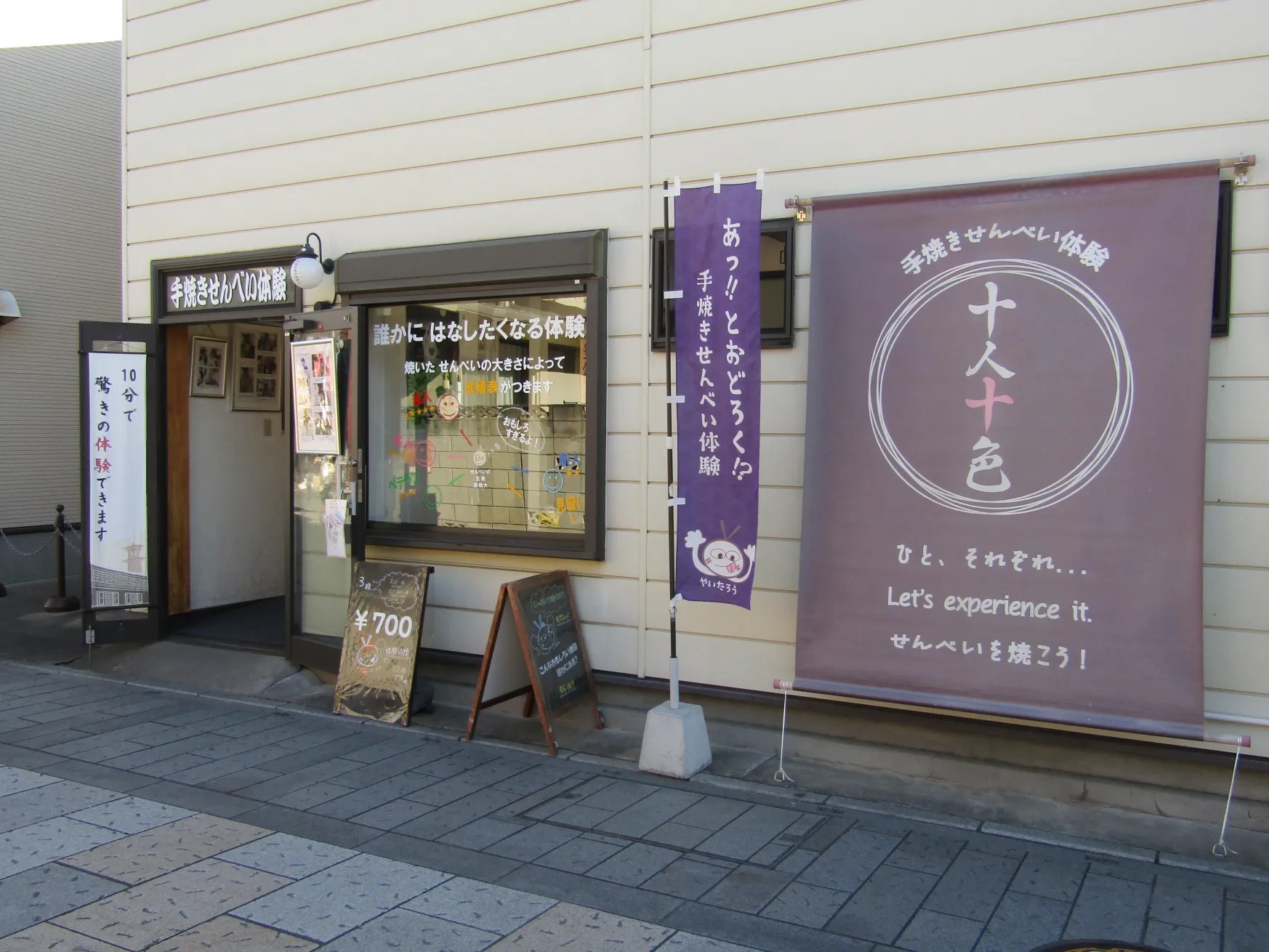 お煎餅の香ばしい香りが広がる店内では、手焼きの工程を体験できます。 作るのは醤油・海老・枝豆3種類。 一枚1分半から2分と短時間で出来るのも魅力です。 出来上がったばかりのあつあつお煎餅の味は格別です。 もちろん持ち帰ってお土産にも最適です。