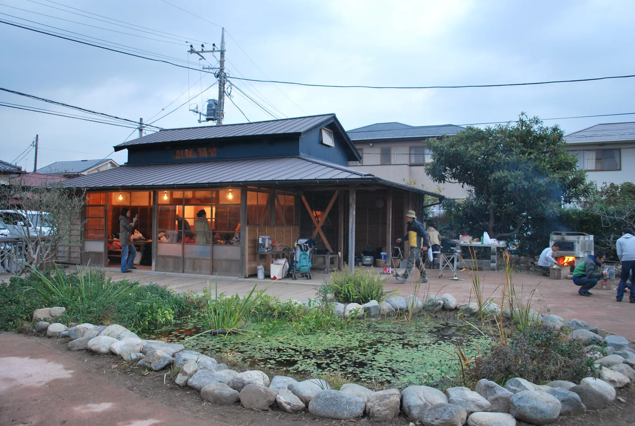 瓦屋根のおしゃれなログハウスの建物が目印。 木のぬくもりと土壁がどこか懐かしい店内で味噌づくりをします。 エアコンいらずの風通しの良い建物の中で味噌以外にもしょうゆや糀を使った様々な発酵食品のワークショップなども開催されています。 近くには貸農園や仕事をしたりマルシェやイベントを開催できる古民家やスペースもあり、都内近県からの来訪者も多数。 お土産に糀を購入することもできます。