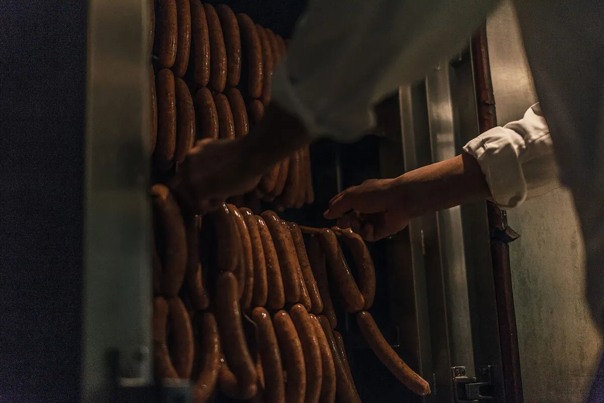 併設のソーセージ工房では厳選肉を使用したソーセージやベーコンは手作り。