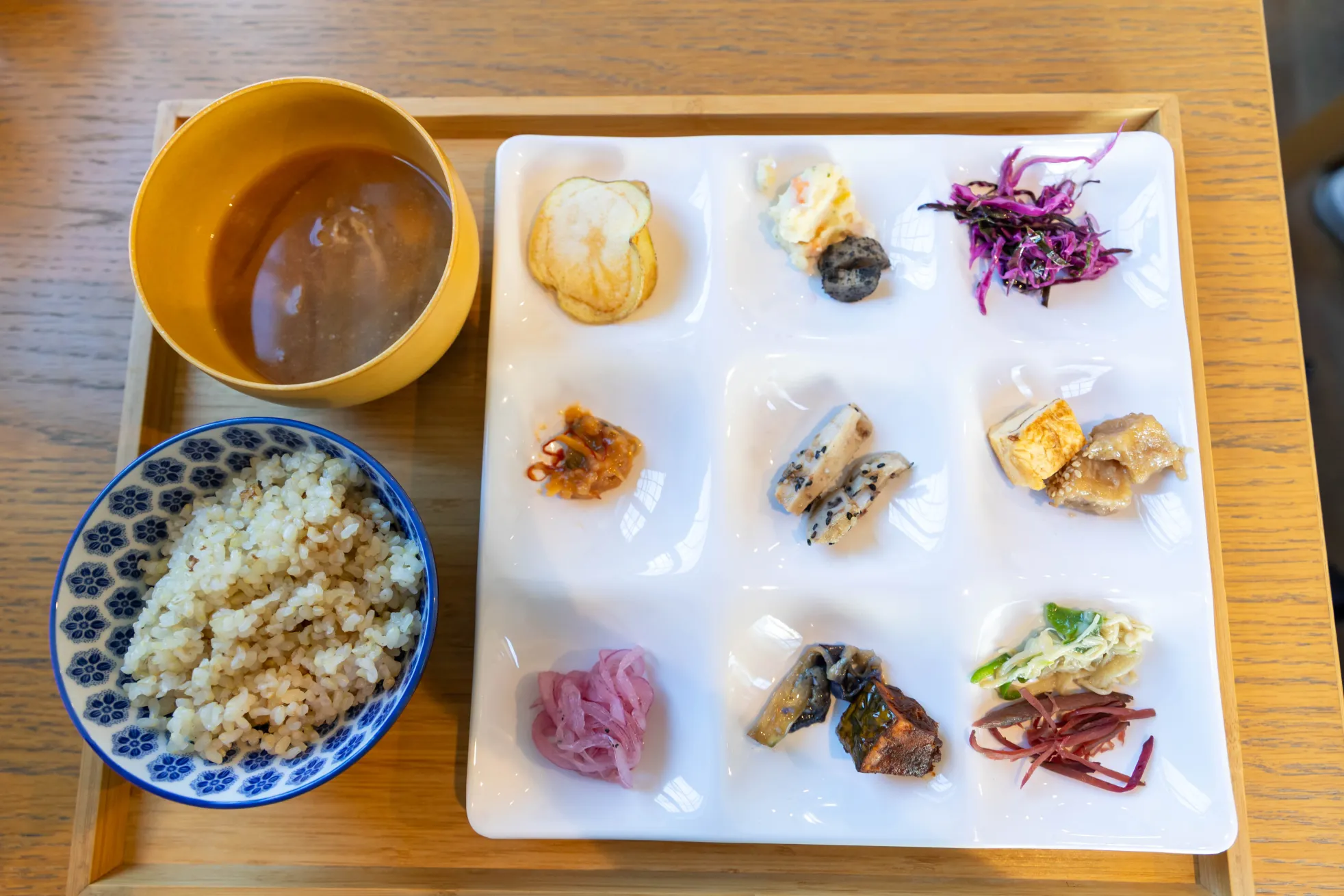 明るくて居心地のよい店内で、糀やこだわりの食材を使った体に優しいランチが食べられます。