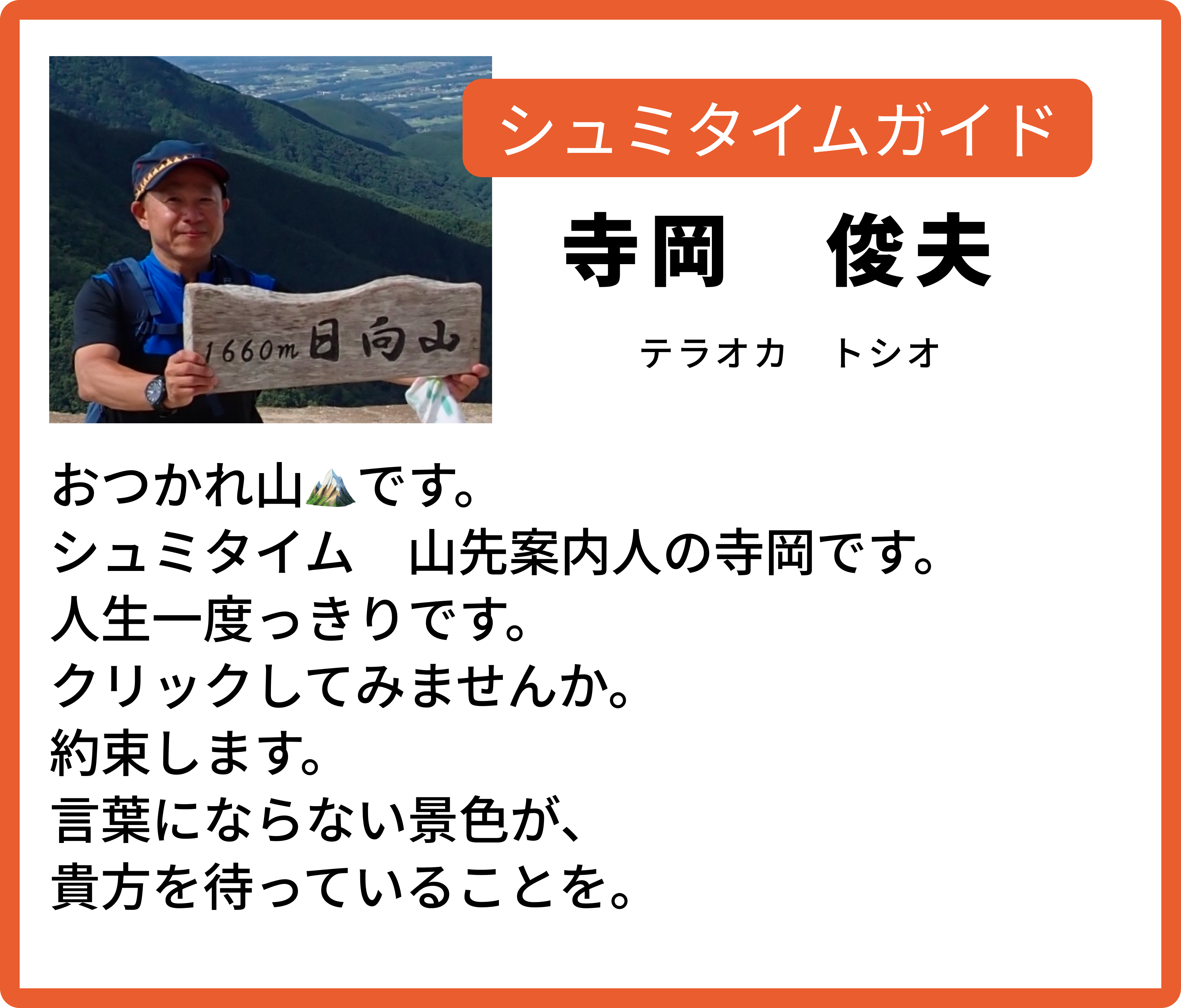 【参加資格】 下記のいずれか一つを満たす健康な方は、どなたでもご参加いただけます。 (1)シュミタイムの高尾山ハイキングに参加済の方 ※シュミタイムでは高尾山ハイキングを舞台に、登山ガイドによるレクチャー等を実施しています。ご不安な方は、高尾山ハイキングへのご参加がおすすめです! (高尾山ハイキングは、シュミタイムのwebサイトでチェックしてみてください) (2)高尾山をリフトまたはケーブルカーを使わずに、頂上まで往復できる方 (3)日常で連続した歩行を2時間以上できる方 なお、参加検討にあたり気になることなどあれば、いつでもご連絡をください。