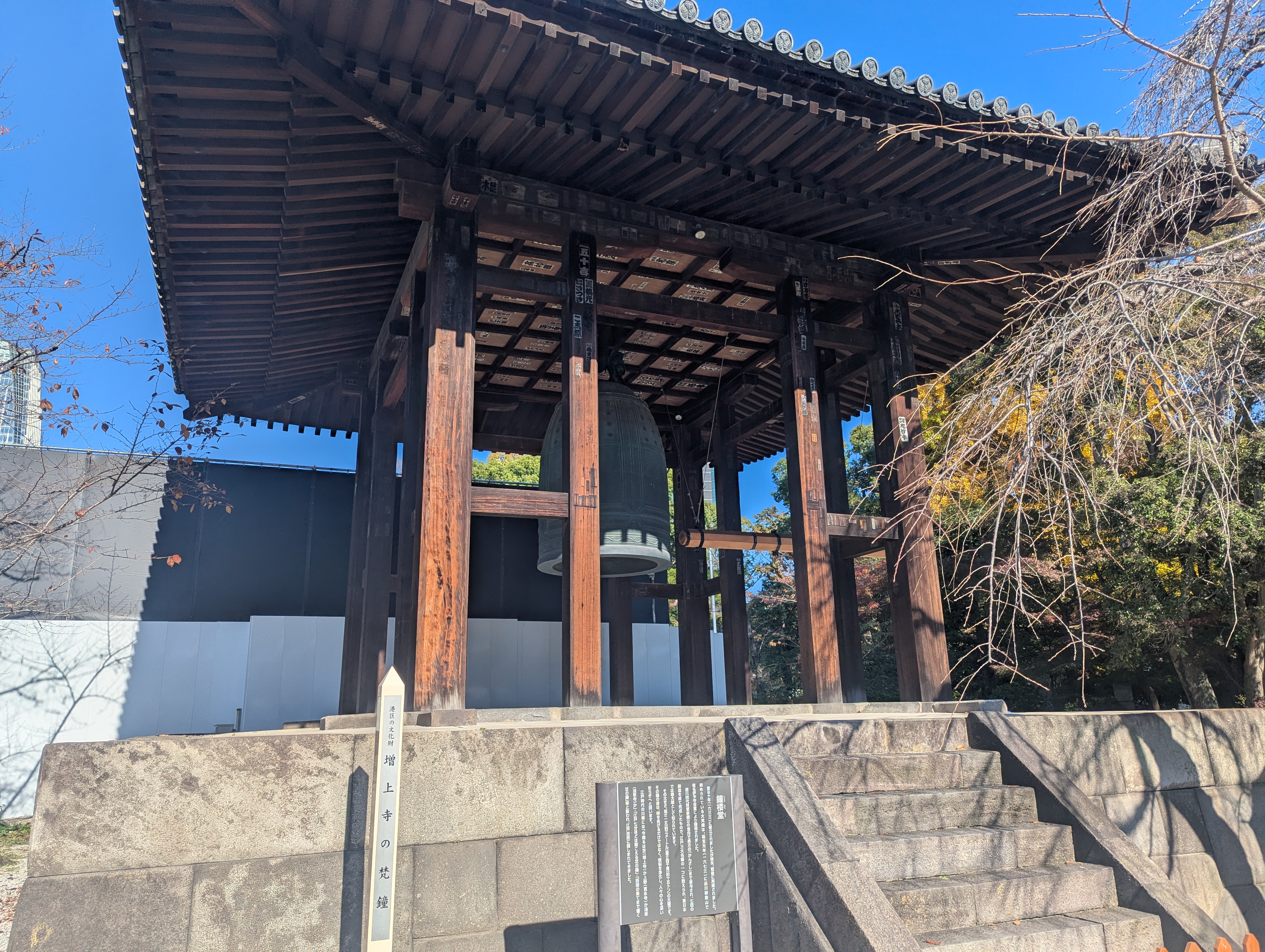 「三解脱門」をくぐって右手に「鐘楼堂(しょうろうどう)」。 古典落語「芝浜」で登場する除夜の鐘は、この「鐘楼堂」のものと言われています。