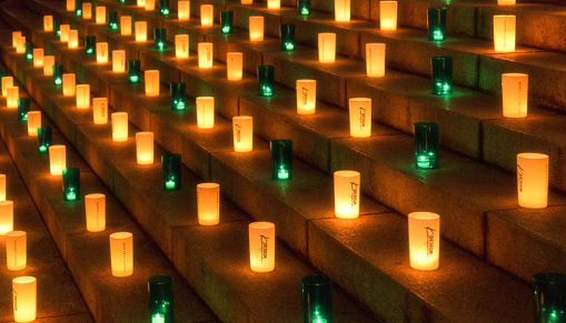 この「大殿」をライブやイベント用に貸し出せるようになったことです。 恒例のイベントとしては「100万人のキャンドルナイト」がある。「でんきを消して、スローな夜を」を合言葉に2003年にスタート。「大殿」の石段にロウソクの灯火が並ぶビジュアルが有名です。