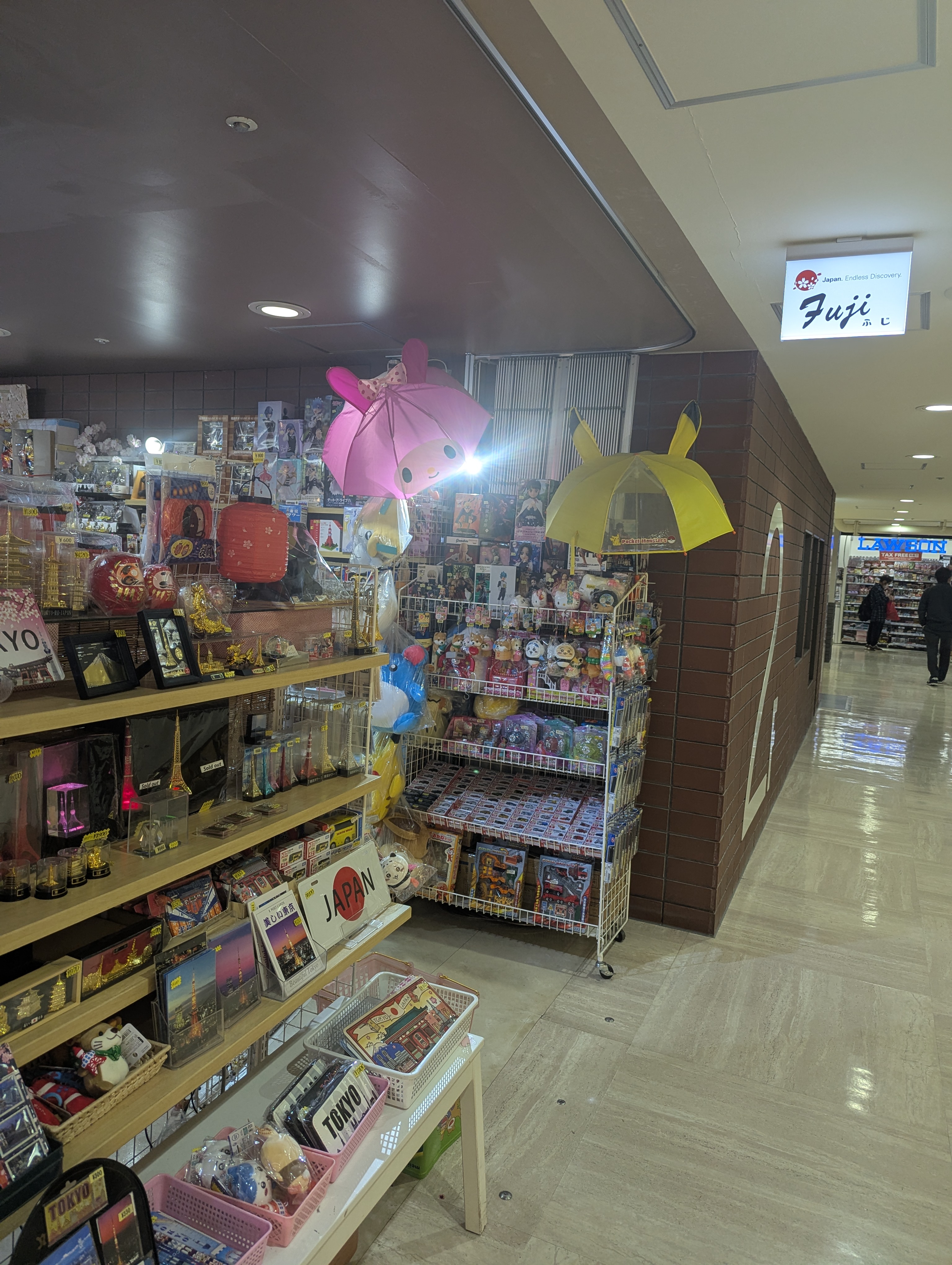 一方、いわゆる修学旅行のお土産。例えば、「ちょうちん」とか「三角形のペナント」とか「東京タワーの置き物・キーホルダー」といった懐かしい東京土産も健在です。タワー開業時から続く「ふじ」という店にそろっています。ここは外国人客の比率が高いのも特徴です。