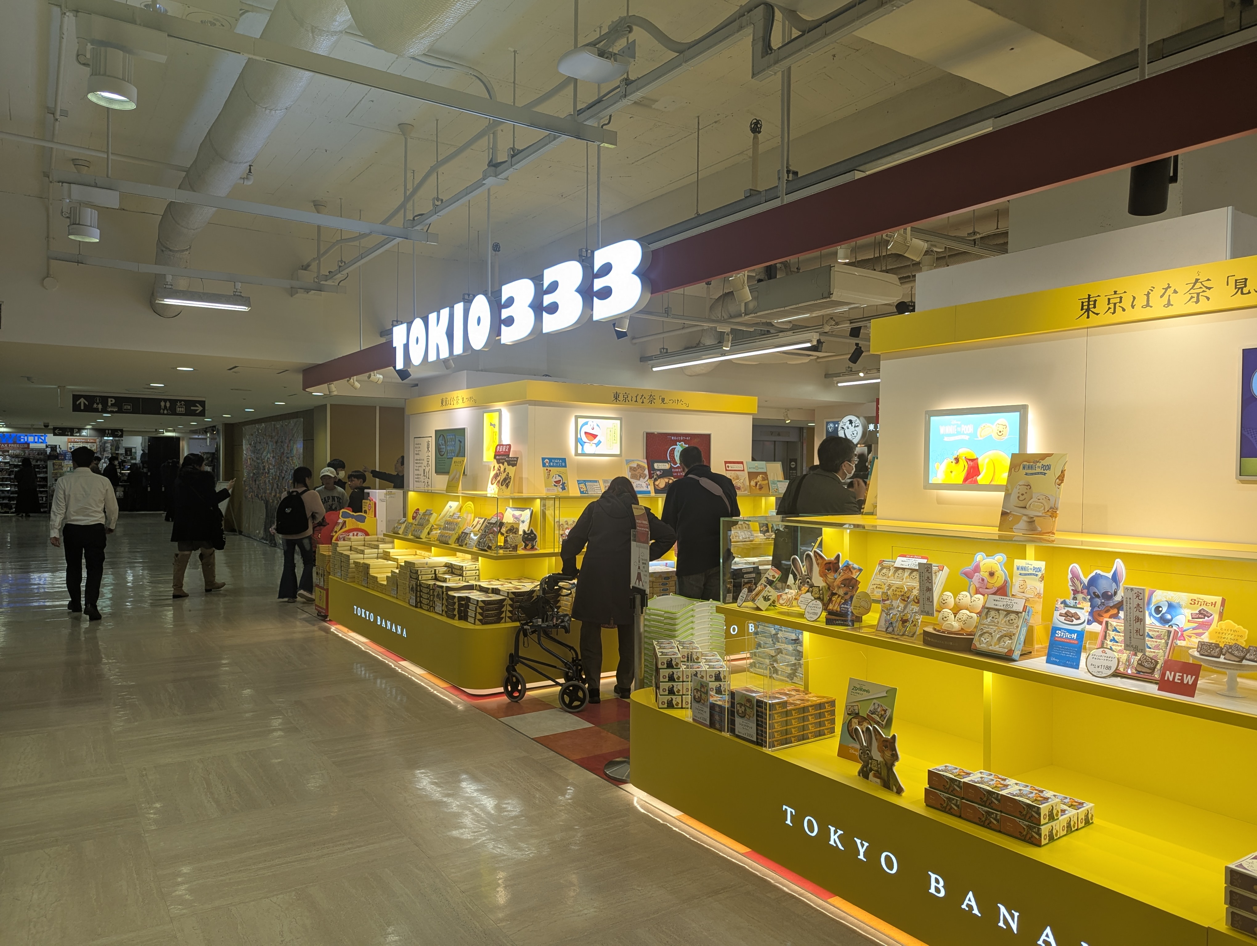 東京土産の店がたくさんそろっています。昔は東京土産というと、「雷おこし」や「人形焼き」でしたが、最近は「東京ばな奈」が定着しました。 「雷おこし」や「人形焼き」はもともと下町の人気銘菓だったものですが、「東京ばな奈」は新たに「東京を代表する新時代のお土産をつくろう」と開発されました。