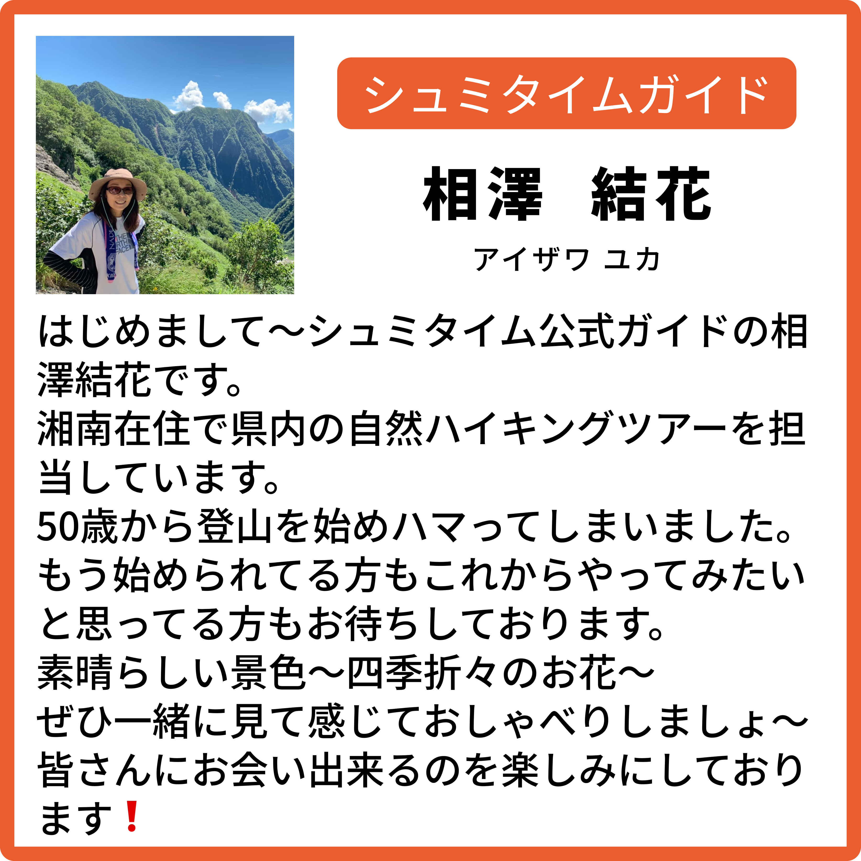・1日1万歩または、連続した2時間の歩行ができる方 ・直近半年以内にハイキング経験(低山含む)がある方